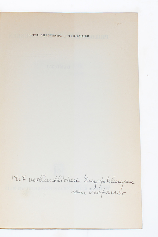 First edition, presentation-copy, of this early important work on the difference in thought between the Heidegger of ""Sein und Zeit"" and the later Heidegger, of great importnace in the Heidegger-reception.