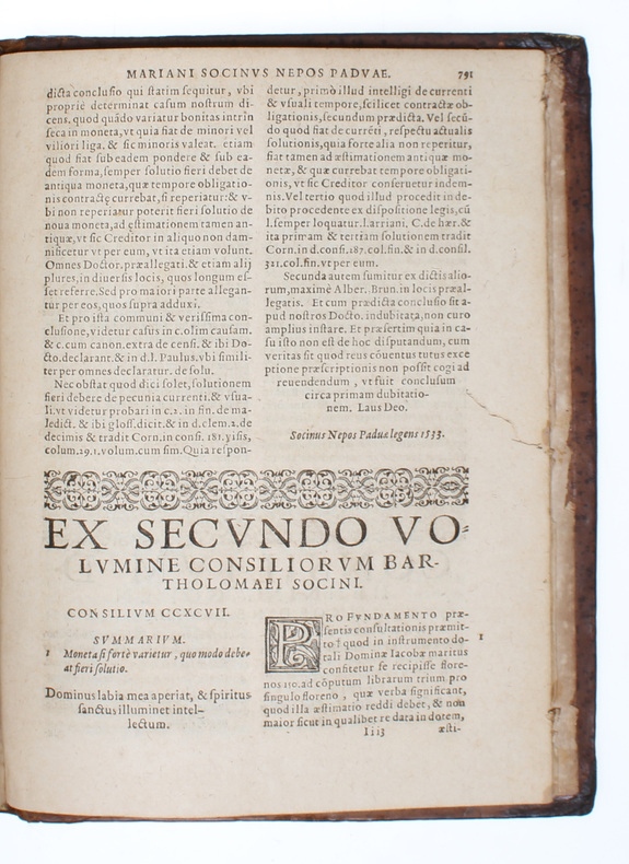 Coloniae, Ioannem Gymnicum, 1591. 4to. Bound in a very nice contemporary full calf with five raised bands, rebacked with the contemporary spine. Richly gilt spine and gilt lines to edges of boards. Contemporary handwriting to top of pasted down front free end paper. Pp. 777-798 with wormholes in margin, not affecting text. A very fine and clean copy. (76), 798 pp.(As usual with the typopgraphical errors: pp. 139, 234, 267,353, 685, 768 are numbered as 339, 202, 263, 343, 645, 778. These errors are to be found in all published copies. See Einaudi 737).