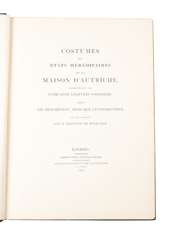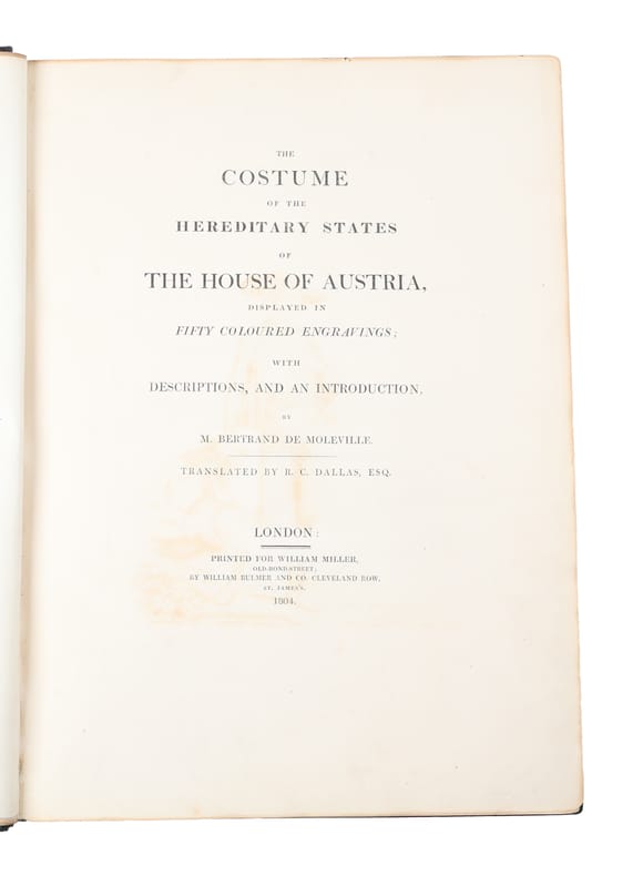 First editon of this beautiful book of 50 finely handcoloured aquatint plates of Austrian costumes, accompanied by text in English and French. Tooley, 333.