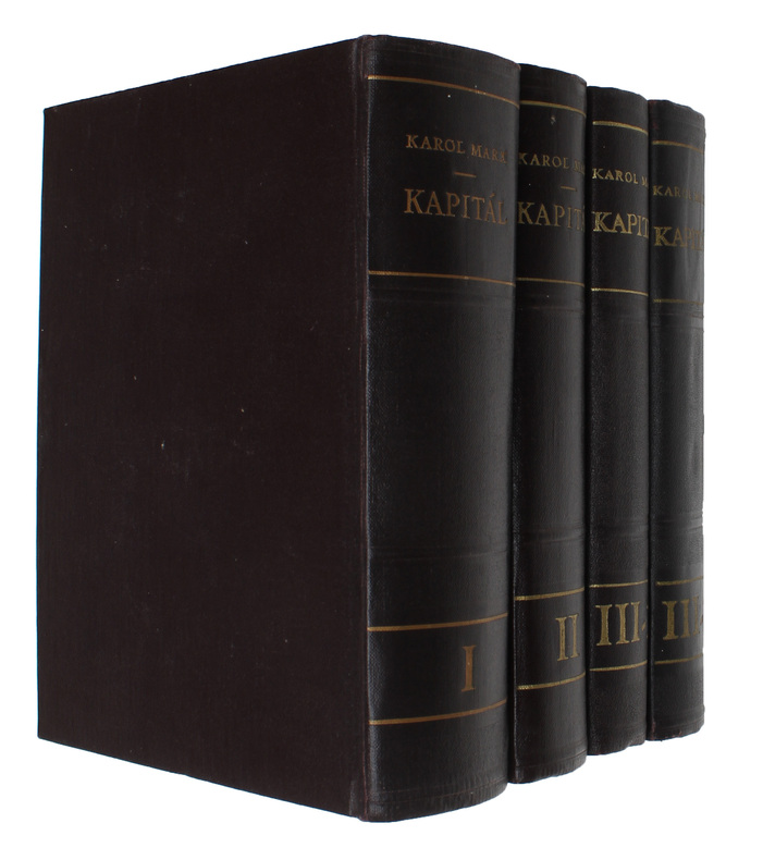 Bratislava, Vydalo Slovenské vydavatel'stvo politickej literatúry, 1955 - 1958. 8vo. 4 volumes, all in publisher's original full cloth. Gilt lettering to spines and front boards and Marx in profile blind-stamped to front boards. A very fine and clean set. 918, (2) pp + fontiespiece of Marx 590, (2) pp 515, (4) pp 541, (4) pp.