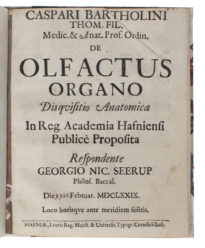 Hafnia (Copenhagen), 1671. Small 4to. In later half vellum. Closely trimmed with slight loss of pagination numbers, otherwise fine. 20 pp. with four woodcut illustrations in text.