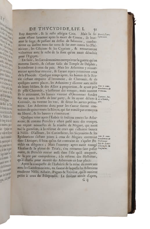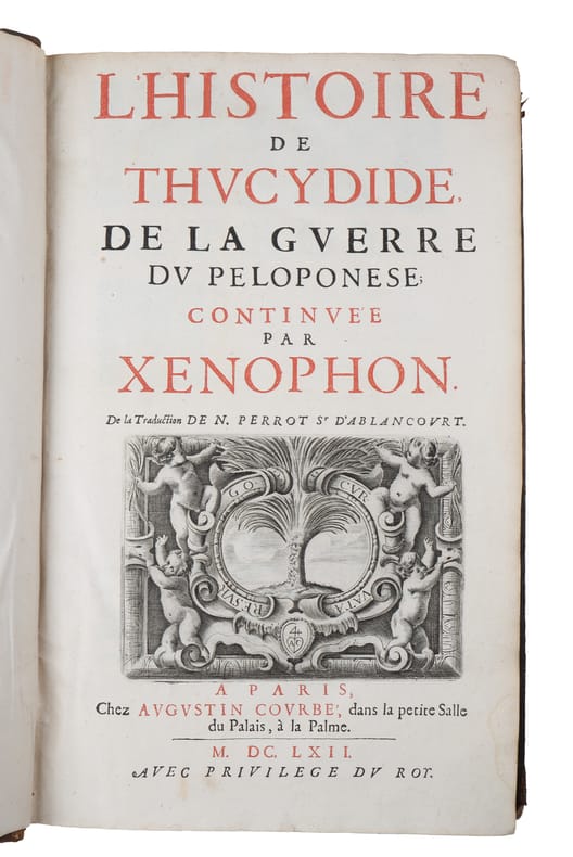 First edition of d'Ablancourt famous translation of Thucydides’ History of the Peloponnesian War. The present translation went through four editions and constitute third overall French translation of Thucydides’ work.