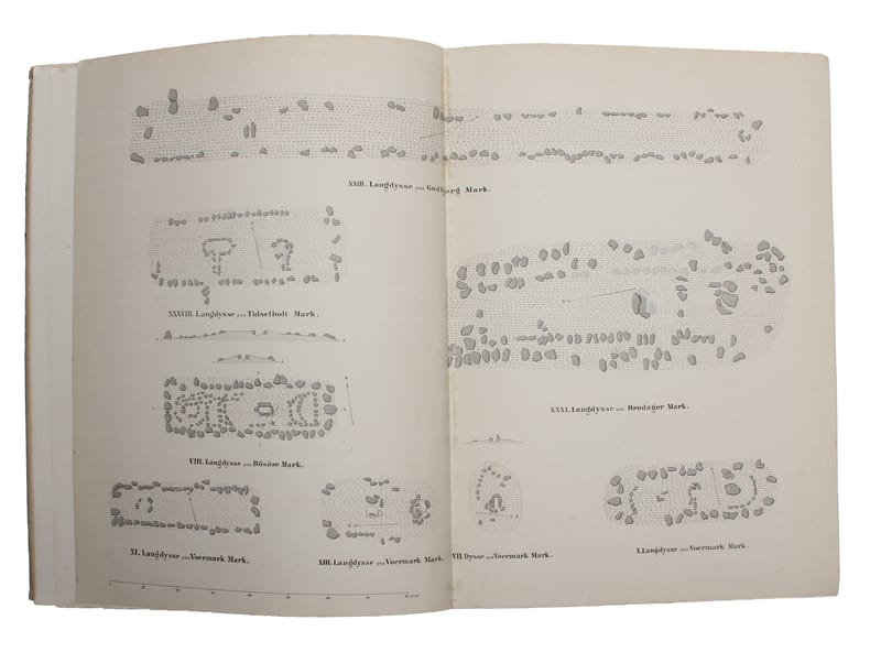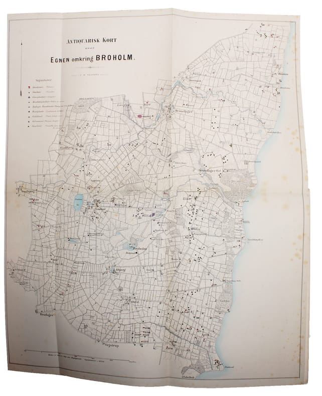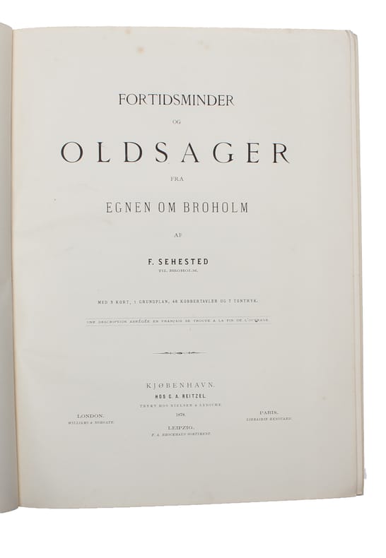 Kjøbenhavn, London, Leipzig, Paris, 1878. Folio. Originalt bogtrykt papbind med læderryg. Ryg med en del slitage, mangler dele af læderet. Indvendig sporadisk brunplettet. 320, (16) pp., 3 foldekort, 1 grundplan, 46 kobberst. tavler og 7 litografer samt talrige afbildn. i teksten.