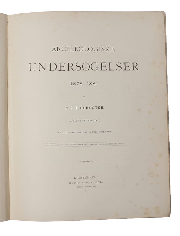 Kjøbenhavn, Reitzel,1884. Stor 4to. Nyere hldrbd. med rygforgyldning. X,180 pp., 5 litograferede kort samt 36 kobberstukne plancher med talrige figurer.