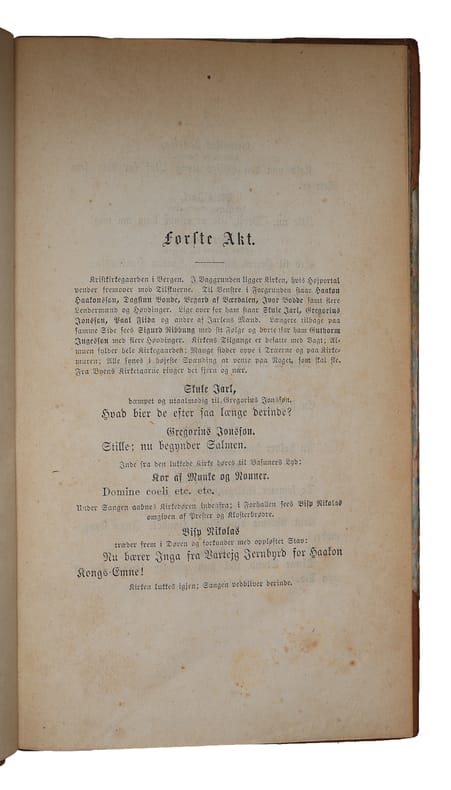 Christiania, Johan Dahls Forlag, 1864. 8vo. Indbundet i et samtidigt halvlæderbind med rygforgyldning. En smule slid ved kanter og kapitæler. Med Christian Richardts navnetræk øverst på titelbladet. Spredte brunpletter. Med tillægget 'Margretes Vuggesang'. (4),217,(5) pp.