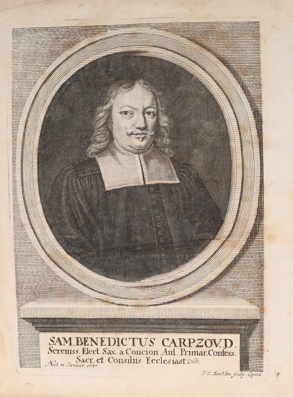 Later edition of a collection of Carpzov's eulogies that highlight the virtues and legacies of high-ranking and notable persons. Benedict Carpzov (1595–1666), widely considered to be the founder of German legal science, was a German jurist and legal scholar. He was born in Wittenberg, Germany, into a family of legal scholars. Carpzov served as a professor of law at the University of Wittenberg and later at the University of Leipzig. Carpzov's contributions to legal scholarship earned him recognition as one of the leading jurists of his time.
