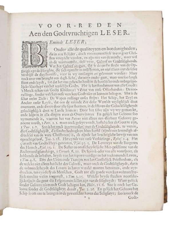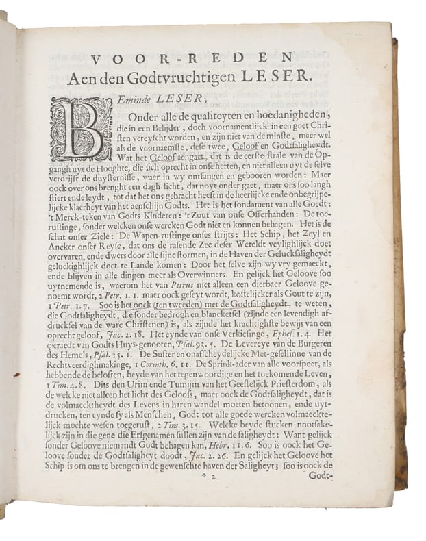 Amsterdam, Someren, 1670. 4to In contemporary full vellum. Stains and miscolouring to boards. Annotation to front free end-paper and previous owner's name in contemporary hand to title-page. Stains and miscolouring to extremities. Internally with occassional underlignings. First 50 ff. with marginal dampstain. (8), 979, (22) pp.