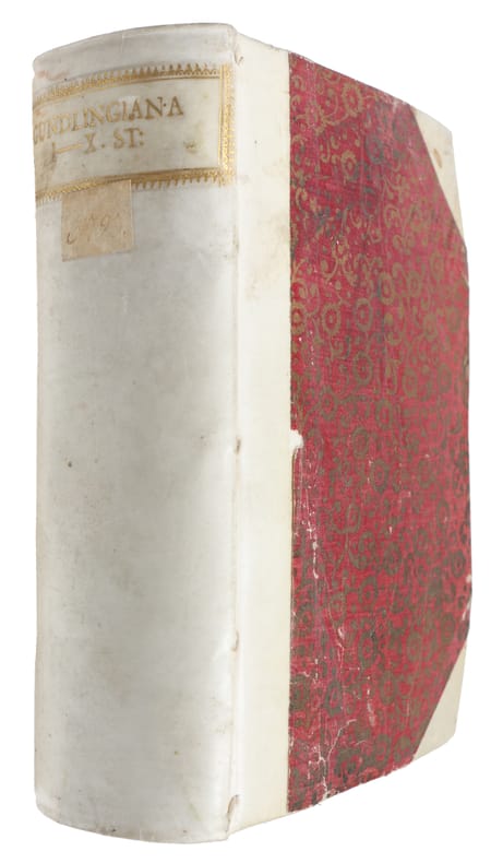 Halle, Rengerischen Buchhandlung, 1716 - 1727. 8vo. Forty parts uniformly bound in four contemporary halv vellum bindings with gilt lettering to spines. All edges coloured in red. Small paper-label pasted on to spines. Ex-libris pasted on to pasted down front end-papers and previous owner's name in contemporary hand to front free end-papers. Boards with wear and scratches, the marbled paper partly detached on front board of vol. 4. Internally very nice and clean. (14), (4), 192-284, (3), 286-503, (43), (2), 196, (2), (2), 198-290, (6), 295-508, (30) pp. (2), 100, (3), 102-370, (2), (5), 372-493, (31), (2), 123, (1), (3), 116-500, (26) pp. (4), 83, (2), (3), 88-186, (2), (3), 188-286, (2), (3), 290-366, (3), 368-494, (14), (2), 200, (2), (3), 202-278, (3), 280-273, (3), 374-501, (27) pp. (2), 101, (1), (3), 104-292, (2), 293-290, (3), 388-545, (23), (2), 184, (2), 186-260, (1), (3), 262-367, (1), (3), 370-514, (28) pp. + 1 folded table.