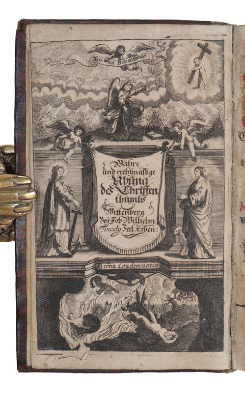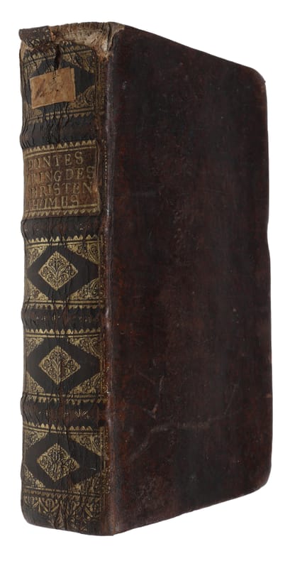 Wittenberg, Fincelius, 1678. 8vo. In contemporary full calf with four raised bands and gilt lettering to spine. Wear to extremities, head of spine with loss of leather. Engraved half-title and title-page with worn-tract in lower margin. Title-page reinforced in lower half. First and last leaves slightly browned and a few small marginal worm-tracts. (30), 646, (30) pp. + engraved half-title.