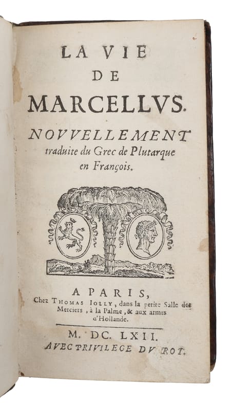 Rare first edition of Tallemant’s French translation of Plutarch’s ‘The Life of Marcellus’ - The fullest extant account of Marcus Claudius Marcellus (c. 270 – 208 BC) was a Roman general and politician during the 3rd century BC and five times elected as consul of the Roman Republic.