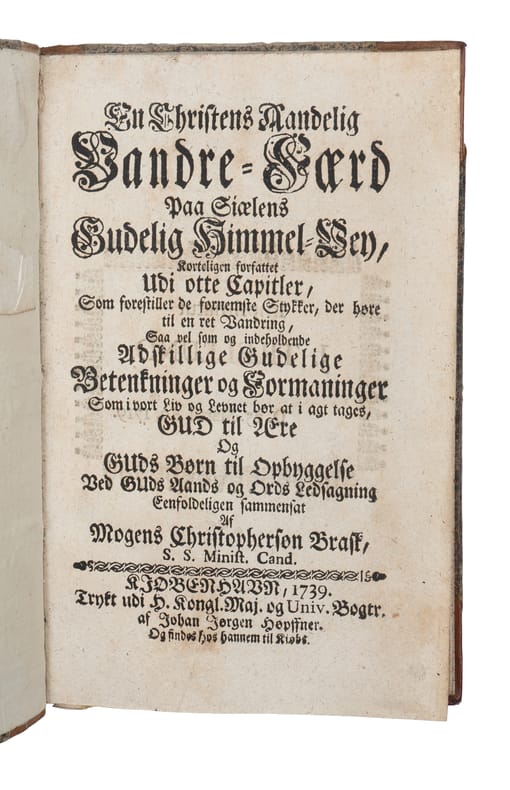 Kjøbenhavn, Høpffner, 1739. 8vo. In contemporary half calf. Small paper-label pasted on to top of spine. Light wear to extremities. The marbled paper on boards creased. Internally nice and clean. (24), 111, (9) pp.
