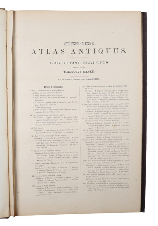 Gothae, Sumtibus Justi Perthes, 1865. Folio (380 x 260 mm). In the original embossed cloth binding with gilt lettering to front board. Spine and boarders og boards faded. Previous owners names to upper outer corner of front free end-paper. Internally with few occassional brownspots but generally nice and clean. 17 pp. + 31 folded coloured maps.