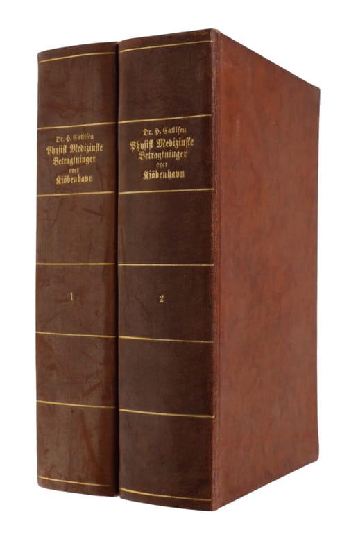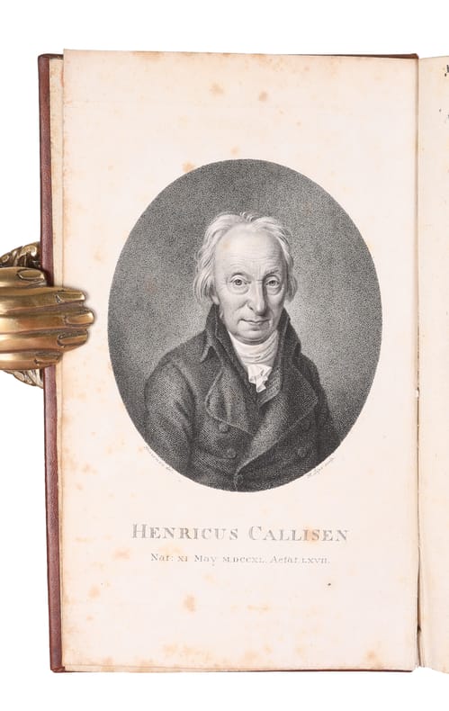 Kiöbenhavn, Frederik Brummers Forlag, 1807-09. 8vo. To særdeles nydelige ensartede hellæderbind med stregforgyldning of forgyldt titel på rygge. Blår helsnit. Enkelte blade lidt brunplettede, men særdeles pæn og velbevaret. På skrivepapir. Med Jakob Jakobsens ex-libris på indersiden af forpermerne. Kobberstukket portræt af Callisen, efter Hornemans tegning, i bind 1. Kobberstukne titelblade. XX, 650 XXXII, 691 pp.