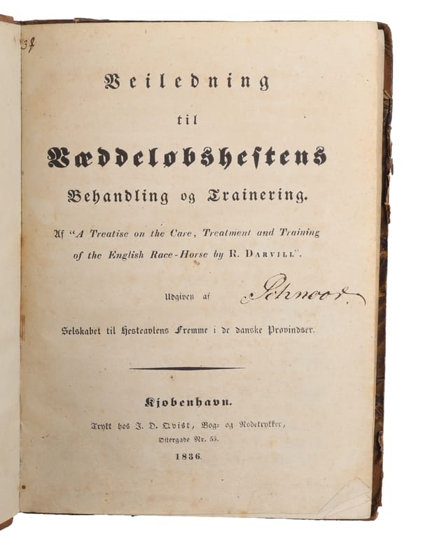 First, partial, translation of Darvill's ""A treatise on the care, treatment and training of the English race-horse"" being one of the earliest publications on the subject in Danish.