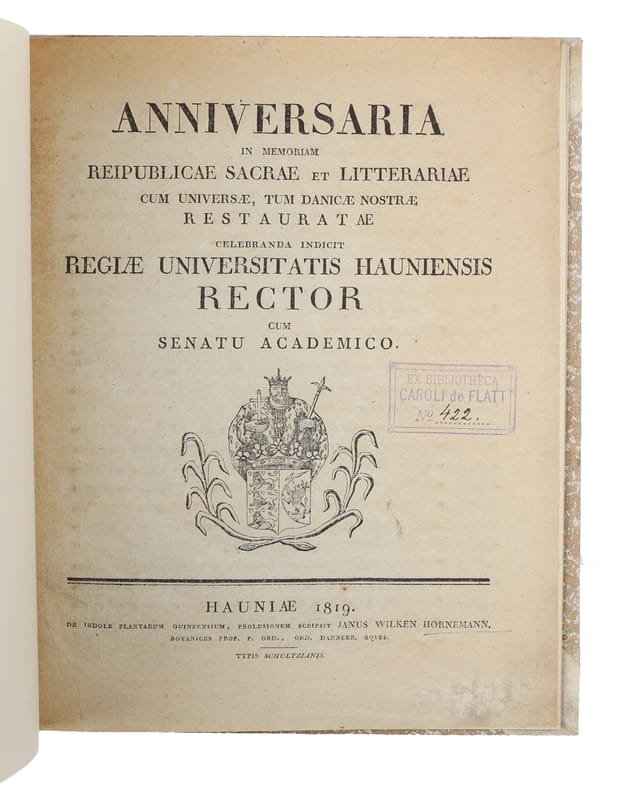 Hauniæ (Copenhagen), Schultz, 1819. 4to. In recent half vellum. Stamp to title-page, otherwise a nice and clean copy. 27 pp.