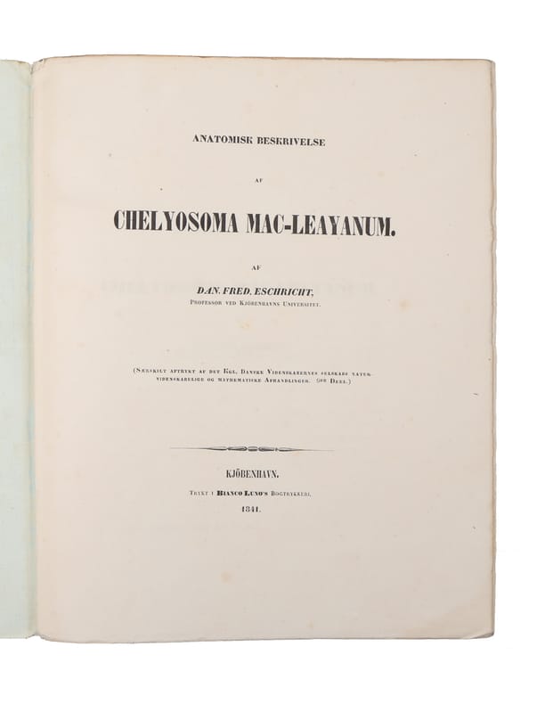 Kjöbenhavn, Bianco Luno, 1841. 4to. Uncut, unopened in the original blue boards. Offprint from ""Det Kgl. Danske Videnskabnes Selskab"", 9de Deel. A nice and clean copy. (2), 16 pp. + 1 plate.
