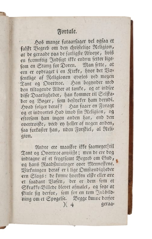 Første danske udgave af ""Die vornehmsten Wahrheiten der natürlichen Religion."" - Bibl. Danica: I:938.