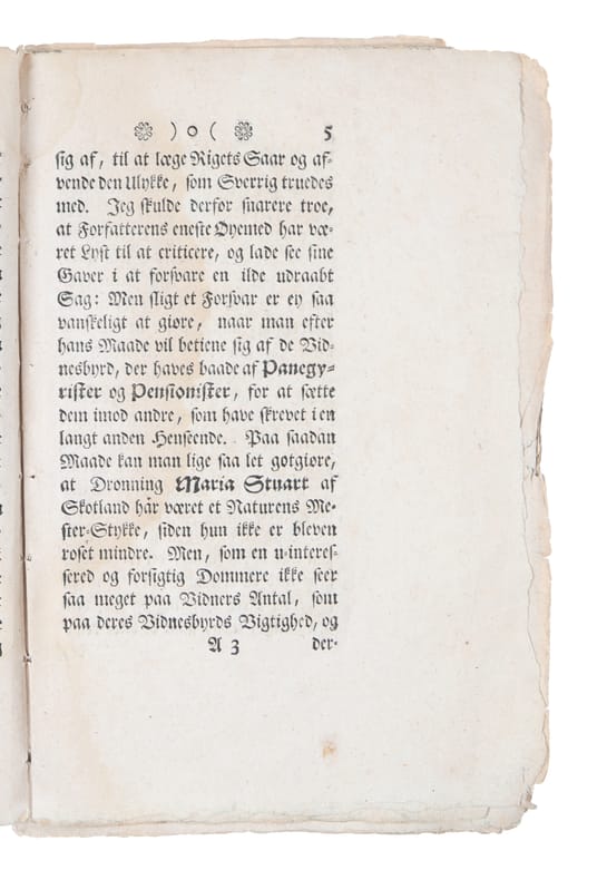 Kjøbenhavn, Trykt hos C.G. Glasings Efterleverske, (1752). 8vo. Uncut in the original blank wrappers. Wear and stains to wrappers. Small label pasted on to spine (Inventory no in Valdemar's Castle's library). Textblock detached from wrappers. Vague stamp to inner margin throughout. 35, (5) pp.