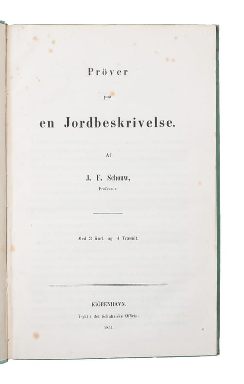 Kiøbenhavn, Thieles Bogtrykkeri, 1851. 8vo. In the original printed boards. Ex-libris (J. Forsander - Swedish biologist) to verso of front board. Small tear to spine and internally with light occassional brownspotting. (2), 93 pp. + 3 folded maps, and 4 woodcuts in the text.