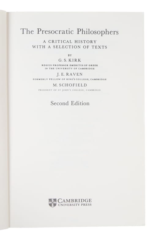 Reprint of the second edition (1983) of Kirk and Raven's landmark work on the Presocratics, in itself an anthology of Presocratic philosophy.
