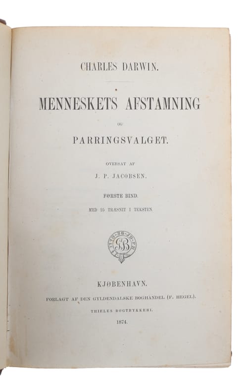 First Danish edition of ""The Descent of Man and Selection in Relation to Sex"". Freeman: No 1050.
