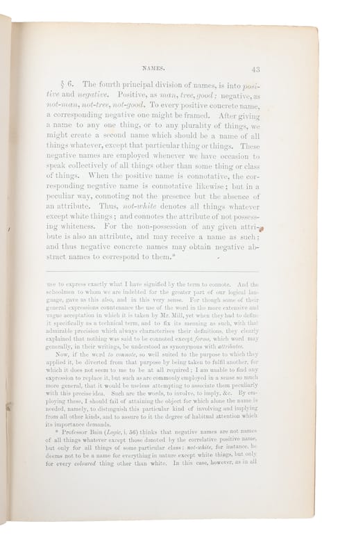 Tenth edition of what is probably Mill's greatest book, an epochal work in logical enquiry, not only for British philosophy, but for modern thought in general.