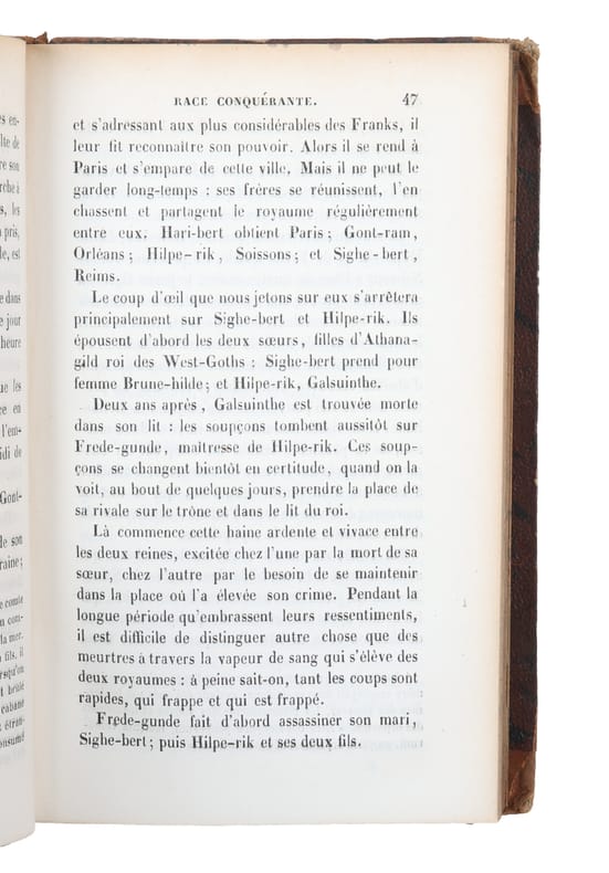 Paris, Gosselin, 1842. 8vo. In contemporary half calf with four raised bands. Light wear to extremities, corners bumped. Small paper-label pasted on to top outer corner of pasted down front end-paper. Light browning to upper and outer margin throughout, but generally internally nice and clean. (4), 347 pp.