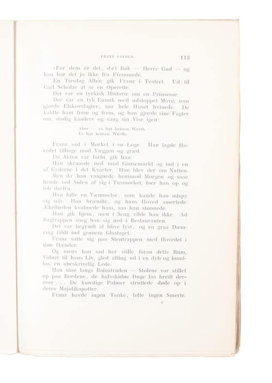København, Det Schubotheske Forlag, 1899. 8vo. Åbeskåret, uåbnet, i de originale omslag Med egenhændig dedikation fra Bang på fribladet: ""Stumperne af et Liv. / Marts 1901 / Herman Bang."" Ryg med slitage, et ellers nydeligt og meget velbevaret eksemplar. (12),412,(4) pp. + frontispieceportræt.