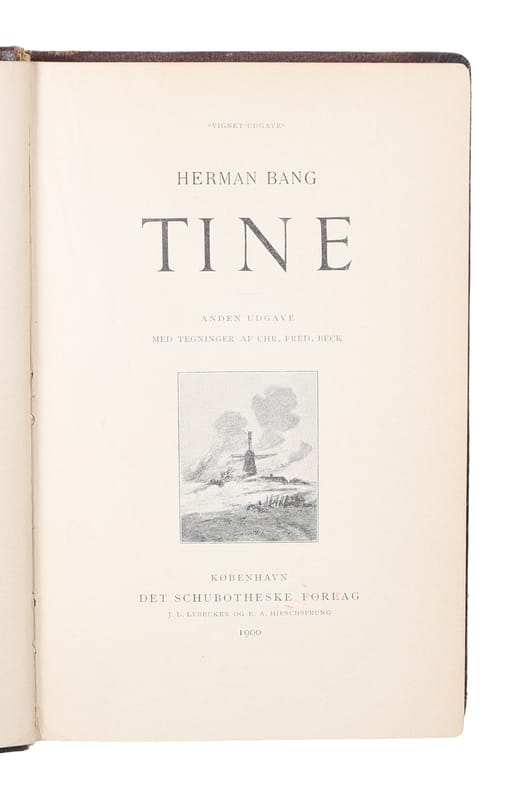København, Det Schubotheske Forlag, 1900. 8vo. I sort vatteret forlagsbind med forgyldt snit. Med egenhændig dedikation fra Bang på fribladet: ""Harald Witzansky / Herman Bang / Marts 1906. Ryg falmet og med en smule slitage, ellers pænt og nydeligt eksemplar. (14), 274, (2) pp.