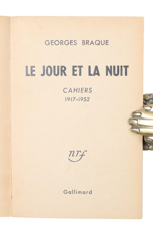 Edition partiellement originale sur papier ordinaire [achevé d'imprimer 4 août 1952]. Recueil de pensées et d'aphorismes illustré de 2 dessins de l'artiste. Exemplaire signé par Braque en page de faux-titre.