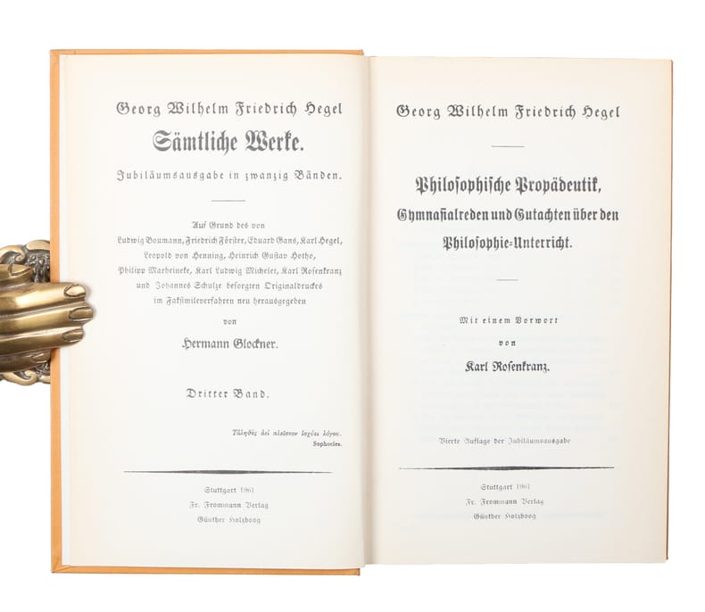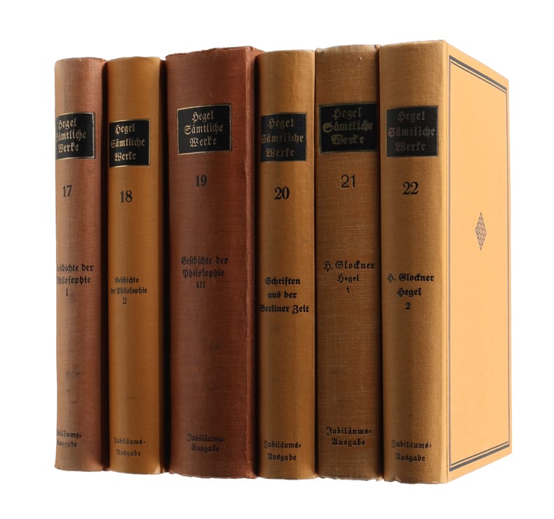 A fine, complete composite set - primarily comprising the fourth edition, but also including volumes from the second and third editions - of the anniversary edition of Hegel’s complete works.