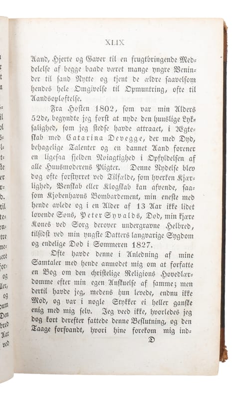 Christiania, Chr. Grøndahl, 1831. 8vo. Two parts bound in one contemporary half calf binding. Wear to capitals, a few annotations to pasted down front end-paper. Stain to title-page and frontispiece, stain to lower half in vol. 2. L, 317, (1) pp. 378 pp.