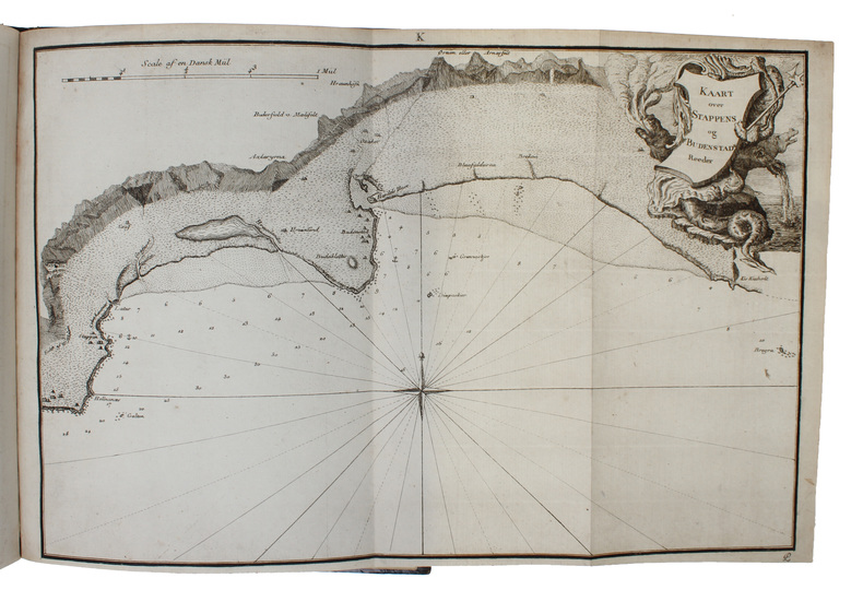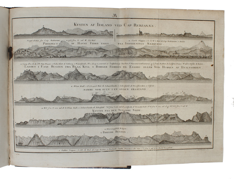 Kbhvn., 1788. 4to. Samt.hldrbd. Revne i ryg øverst og nederst. 3 kobberstukne vignetter(med landtoninger) bortklippet fra teksten. (4),72 pp. På skrivepapir. - Til værket hører løse kort, som ikke er med her. Foreliggende er: 1.Kaart over Torshavn. 2.Boesands Havn. 3.Kiible Wiig. 4.Waslösewiig. 5. Strömswiig. 6. Kaart over Havnefiord. 7. Kaart over Stoppens og Budenstads Reeder. 8. Kysten af Island ved Cap Reikianæs. 9. Udkast af rindewiigs Havn...(i teksten indtrykt). 1o. Fortoninger af Westlige og Nordwestlige Kyster..Denn sidste med skjold. Kortene måler 24x18-35 cm. - Fiske 368. Eksemplaret hos Fiske er heller ikke komplet.