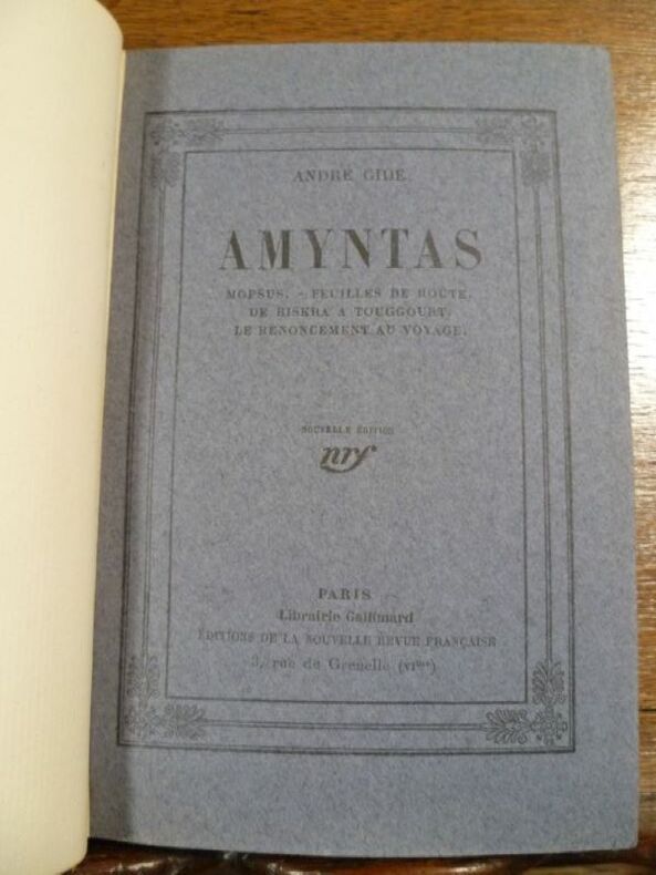Il s'agit de la première édition illustrée d'Amyntas,notes prises par André Gide durant les différents séjours qu'il fit en Afrique du Nord aux alentours de 1900. Remise de 20% pour toutes commandes égales ou supérieures à 200 €