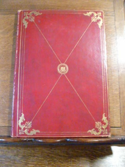 A Bruxelles, Librairie Polytechnique d'Aug. Decq, 1845.Un volume relié (20,5 x 29 cm) non paginé (40 pp.), portrait de Napoléon gravé par Hopwood en frontispice. Reliure plein cuir de Russie cerise de l'époque, dos lisse, titre doré en long, encadré de fleurons, décor doré semblable à chaque plat, formé d'un petit médaillon central avec aigle impériale, relié aux angles par deux diagonales de pointillés, triple encadrement de 2 lignes pointillées et d'un filet, jeu de fleurons angulaires, tranches dorées, gardes de papier gaufré rose (coiffes frottées, 3 coins émoussés, rousseurs et auréole latérale au frontispice, rousseurs au faux titre et au titre, le reste frais).Ex libris du baron Amand Marie Corneille, baron Casier de ter Beken.