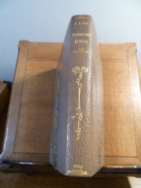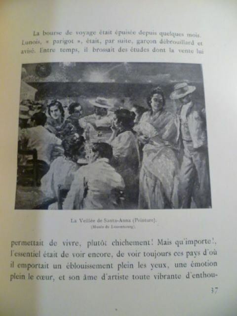 Floury Paris 1914 In-4 carré ( 270 X 215 mm ) de 246 pages, demi maroquin chocolat à coins, dos à nerfs orné de caissons et filets dorés avec date dorée en queue, tête dorée sur témoins, couvertures et dos conservés, non rogné ( Reliure signée de CANAPE ). Très nombreuses planches hors-texte en noir et en couleurs ( lithographies, eaux-fortes, héliogravures originales et inédites, fac-similés de pastels et d'aquarelles, etc ), et plus de 100 reproductions hors-texte ou dans le texte d'après les peintures, pastels, aquarelles, dessins, eaux-fortes, lithographies, illustrations, etc., de l'Artiste, enrichi d'un portrait original à l'eau-forte, de croquis originaux et inédits, etc. Comprend également la gravure "Dame turque", qui apparaît UNIQUEMENT dans cette édition de luxe. L'ouvrage est complété par un catalogue détaillé de l'oeuvre de LUNOIS. EDITION ORIGINALE sur Japon, 1 des 10 du tirage de tête ( N°10 ) contenant une double suite des planches et illustrations hors-texte et UN DESSIN ORIGINAL signé aux crayons de couleurs par Alexandre LUNOIS. Très bel exemplaire dans une fine et élégante reliure signée de CANAPE.