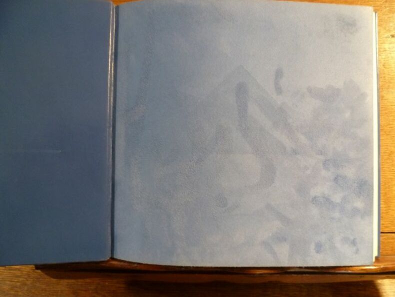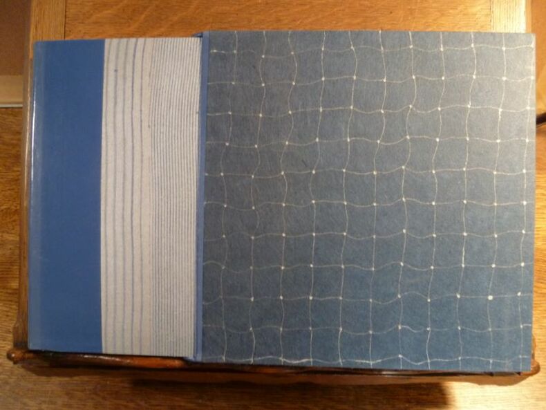 Indifférences, 1985. Un volume relié (22 x 21 cm) non paginé. Reliure plein box smalt, dos lisse, titrage doré en long, plats décorés à l'imitation des empreintes de Bonargent, sous étui à rabat plein box bleu à bande de papier central, sous étui plein papier. Reliure signée de Maithé Mouillac (bibliothèque personnelle). Une très légère éraflure sur l'étui sinon exemplaire en très bel état.Tirage limité à 99 exemplaires numérotés qui comportent huit empreintes hors texte de René Bonargent. La maquette est due à René Bonargent, la composition à Jacques Philippe et l'impression typographique à Hubert Lebraud.