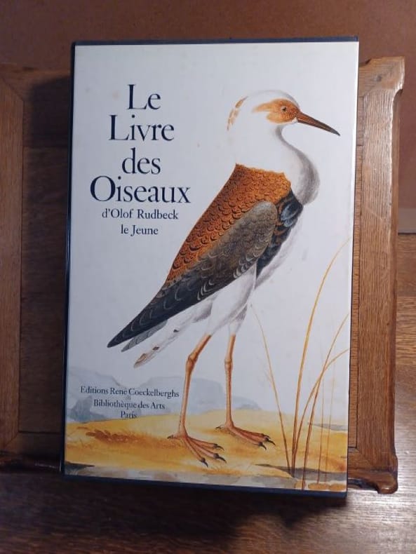 Paris, Editions René Coeckeberghs , Bibliothèque des Arts, s.d. (1988), gr. in-4to, (35 x 23 cm.) XXIX (+1 blanche) + 166 feuilles de texte (332 p. !) 1 166 planches en couleurs + 3 p. (Les oiseaux peints par Rudbeck selon le système de Wetmore) + 1 feuille (coloph.), Reliure en pleine bleue nuit, jaquette ill. en couleurs, étui ill. à l’identique. Bel état.