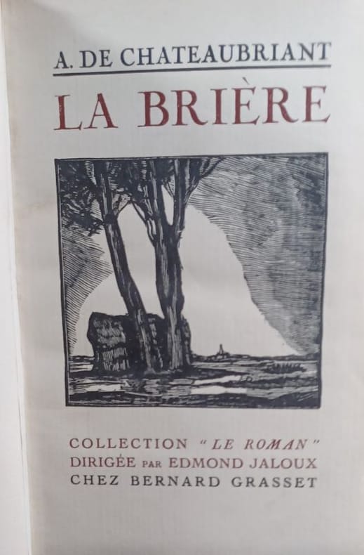Édition illustrée de 40 aquarelles originales de Jean-Pierre Rémon, chacune signée, tirage à 159 exemplaires, celui-ci n'est pas justifié mais nominatif, sur Japon nacré, comparable aux 18 num. sur ce même papier, avec une suite de 5 aquarelles signées (anciennement encadrées) et un grand tableau encadré. Il est enrichi d'un envoi autographe signé de l'artiste accompagné d'une aquarelle originale qui s'ajoute à l'illustration, sur toute la double page de faux-titre : ""pour le Docteur Greninger cet exemplaire de la Brière peint spécialement pour lui, sur Japon!... sur ce difficile Japon! Que ces aquarelles (presque) peintes avec l'eau de la ""Brière"", lui racontent tout le merveilleux de ce roman tourmenté et seul, sauvage et profond... Que ce petit étang, peint devant Madame Greninger que l'ai la chance d'avoir sous les yeux, soit le témoignage de toute mon amitié, et de ma reconnaissance pour l'intérêt qu'ils me portent. Fidèle souvenir de Jean-Pierre Rémon"". Très bon état