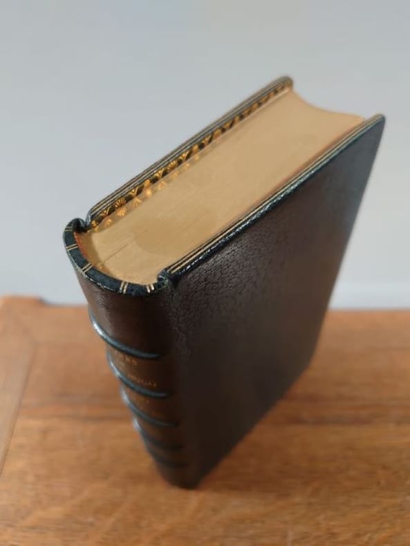 Paris, Lemerre, sans date. 16 x 9,5 cm, 335 pp. Un volume relié plein maroquin vert bouteille, dos à nerfs, titre dorés, double filets sur les coupes, cannelures dorés sur les coiffes, encadrements de roulettes dorées sur les contreplats, toutes tranches dorées. Reliure janséniste en bel état. Ex-libris de Diane de Gratzmuller.