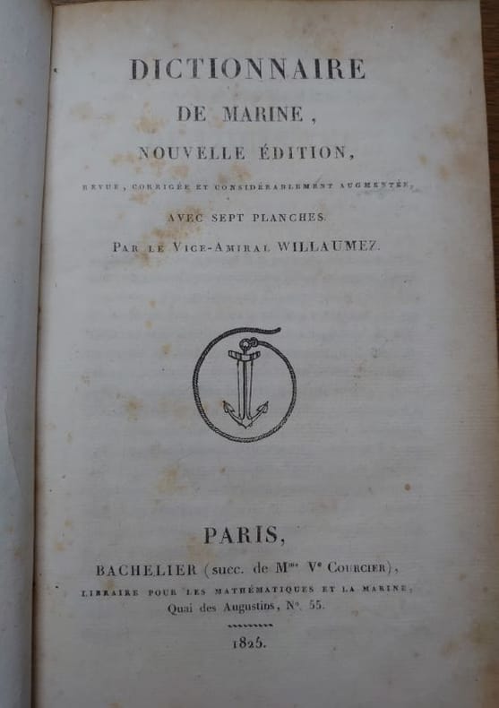 Paris, Bachelier, 1825.21,5 x 13 cm, x, (2) 590 pp. Relié demi-chagrin noir (dos refait), dos lisse orné, titre doré. Reliure en bon état. Avec 9 planches dépliantes (dont deux en couleurs, pavillons). Des rousseurs, les bords des planches sont poussiéreuses et effrangés sinon elles ont en bon état.