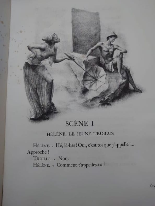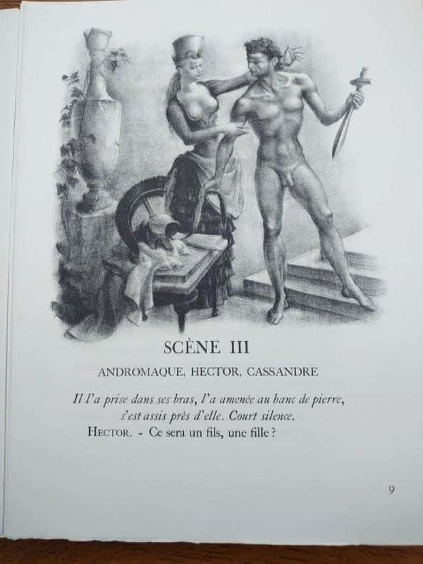 Paris, La Jeune Parque, 1945. 33 x 25,5 cm, 142 pp. En feuilles, sous jaquette rempliée, chemise et étui décoré d'éditeur. Minimes accrocs à l'étui, des rousseurs sur un feuillet, sinon bel état. Un des 227 exemplaires sur vélin d'Arches (seul tirage après 3 ex. sur Japon et 20 ex. hors commerce). Illustré de 20 lithographies originales de Mariano Andreu (qui réalisa les décors de la première présentation de la pièce en 1935).
