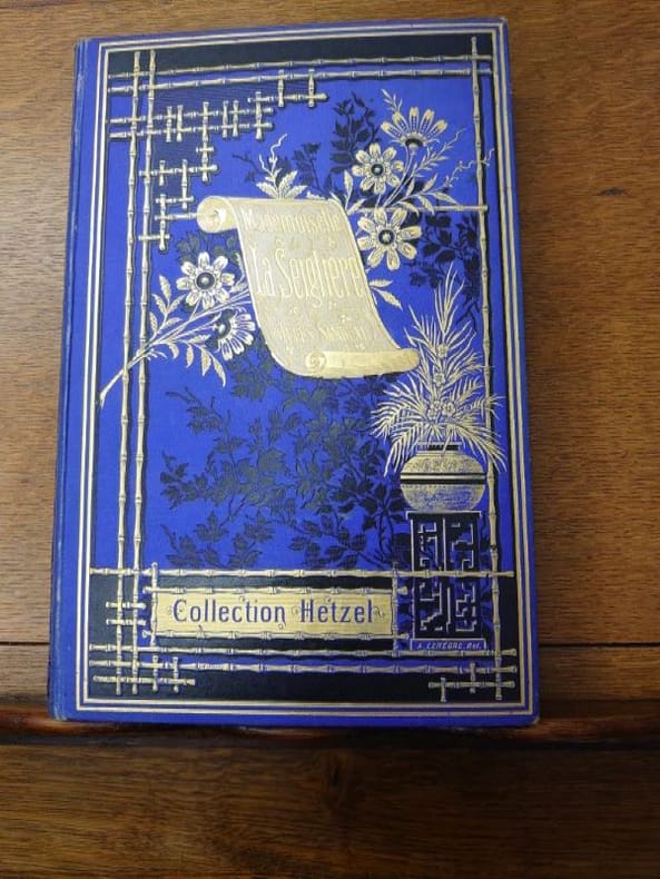 "J. HETZEL ET CIE. NON DATE. In-8. Relié demi-cuir. Bon état, Coins frottés, Dos à nerfs, Rousseurs. 307 pages. Dos à 4 nerfs. Tranches dorées. Un signet. Reliure signée sur la coiffe en pied ""A. LENEGRE RELIEUR"" en dorée. Frontispice en noir et blanc sous serpente. Quelques planches en noir et blanc. Une illustration au-dessus des titres de chapitres. Epidermures. 4 caissons avec ornements, auteur et titre en dorés.. . . . Classification Dewey : 840-Littératures des langues romanes. Littérature française"