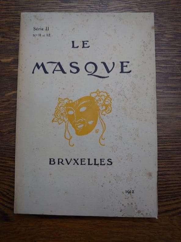 "14. Bruxelles, H. Lamertin, mai 1910- juillet 1914, stapled in-8° issues, with a stiff wrapper designed by George Lemmen, printed on high quality paper. Issues of 20-30 pp. AVAILABLE; Série I (première année) 1910-1911; numéros 1,2,3,4,5,6-7,8-9,10-11,12. Série II 1912; numéros 1,2,3,4,5,6,7-8,9-10.11-12 . Série III 1914; numéros 1,2,3 = last issue. Complete set in original issues . Some of the wrappers are a bit dustsoiled, some of the staples are corroded but in all a reasonably good set. This periodical contains literary contributions by Grégoire Le Roy, Emile Verhaeren, Remy de Gourmont, Franz Hellens, Camille Lemonnier, Raymond Limbosch, Jean Dominique, Albert Mockel, frenand Crommelynck, Stuart Merrill, Charles van Lerberghe, Marie Gevers. The illustrations consists of woodcuts or lithographs by George Minne, Charles Doudelet, George Lemmen, Jean de Bosschère, Drésa, E. Bernard...The second issue of the third series in on large paper. Added is a separate off-print with the same cover design but on a smaller format of an article by Jean Dominique on children's books; Les Enfants et les Livres, 54 pp, éditions du Masque.."