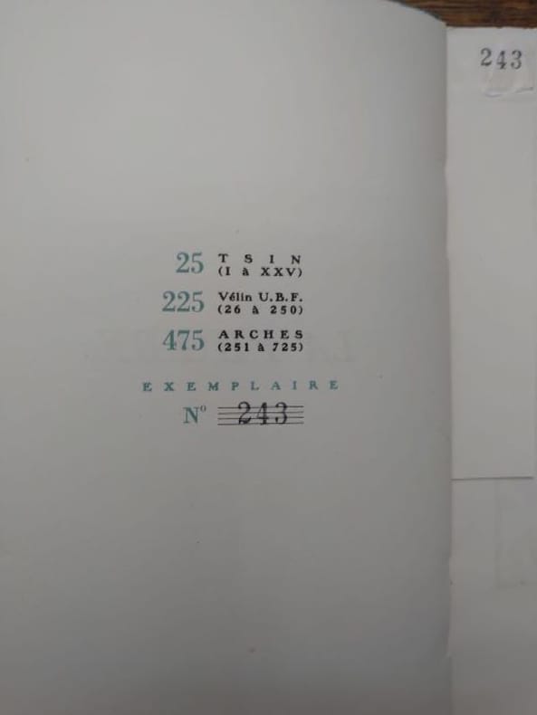 Paris Maximilien Vox 1943. 19 x 12 cm, 137 pp. Broché, couverture illustrée. Etui de l'éditeur. Etui légèrement usé, un petit accroc au dos, sinon bon exemplaire non coupé. Édition originale, illustrée de 10 compositions de Guy Arnoux, dont une en noir sur la couverture, un frontispice et 8 hors-texte en couleurs. Tirage limité à 725 exemplaires numérotés. Un des 225 exemplaires sur vélin, second grand papier après 25 exemplaires sur Tsin.