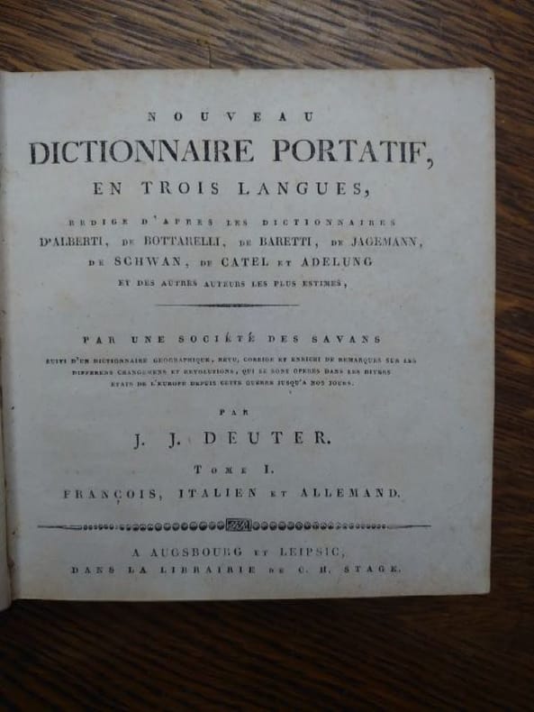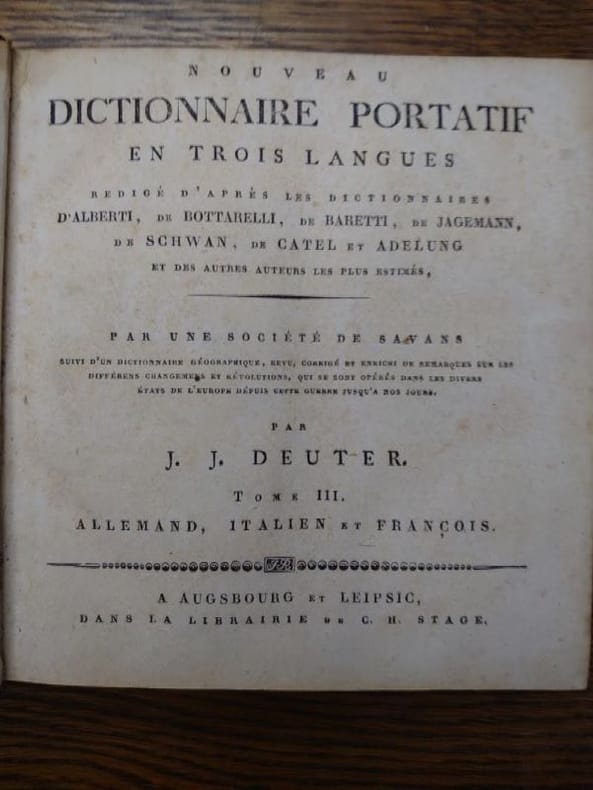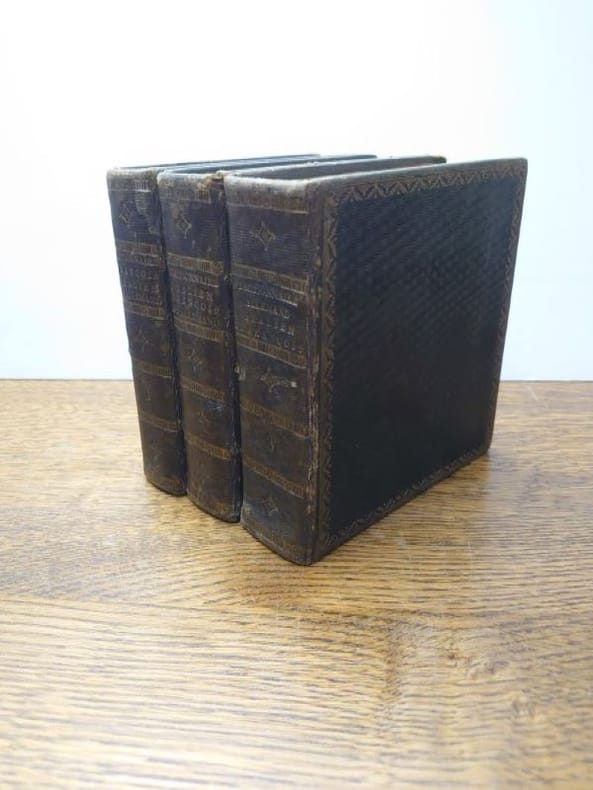 A Augsbourg et Leipsic, dans la librairie de C.H. Stage, sans date [1813]. 14,5 x 13,5 cm, VII-495 pp., 550 pp. et 681 pp. Trois volumes reliés plein maroquin vert, dos lisse ornés, plats décorés d'un encadrement d'une frise dorée. Reliures légèrement usées, traces de frottements, coins émoussés, un accroc au dos du tome 3 qui est légèrement dérelié, sinon bons exemplaires.