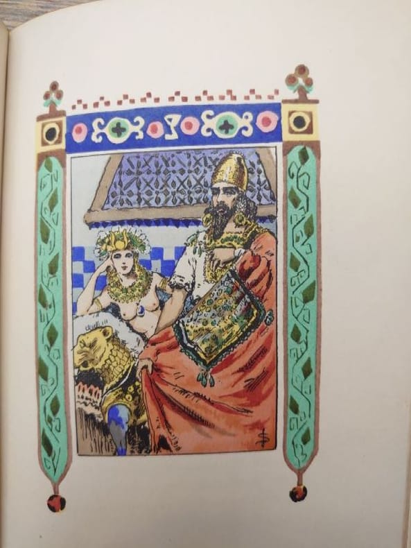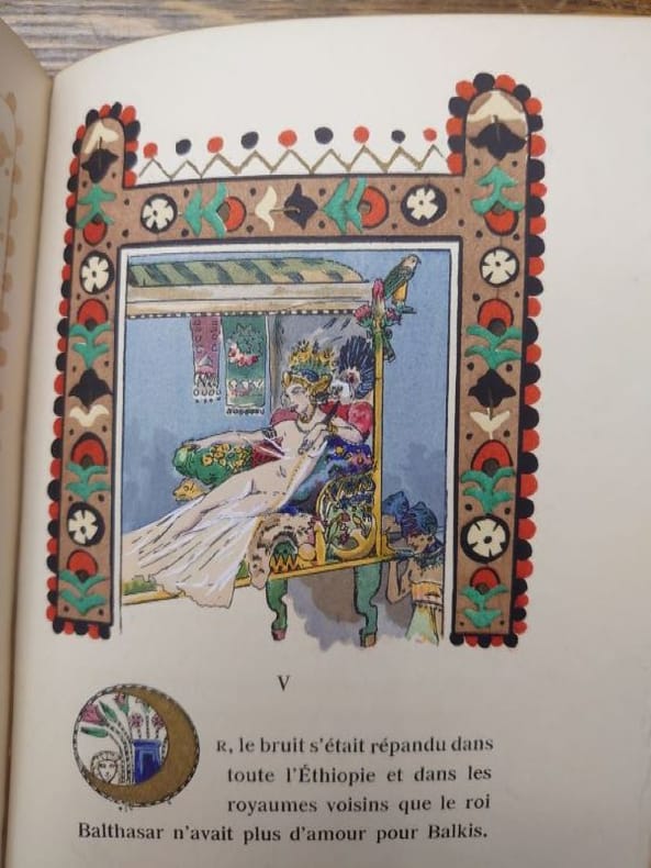 A Paris, Librairie des Amateurs, E. Ferroud - F. Ferroud Successeurs, 1925. 18,5 x 12,5 cm, 56 pp. Relié plein vélin, dos lisse, titre à froid au dos, tête dorée, couverture et dos conservés. Reliure signée Laurent Peeters (tampon monogramme sur le deuxième plat). Quelques taches sur certaines pages sinon bel exemplaire. Un des 1200 ex. num. sur vélin. 12 composition en couleurs, dont 5 h.t., lettrines et culs-de-lampe de Serge de Solomko.