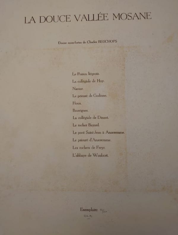 Les oeuvres et ouvrages décrits sont complets et en bon état, sauf indication contraire. Nos conditions de vente sont conformes aux usages de la Chambre professionnelle belge de la Librairie Ancienne et Moderne (CLAM) et aux règlements de la Ligue Internationale de la Librairie Ancienne (LILA). Pour les expéditions, nous proposons un tarif écionomique par Mondial Relay pour les pays disponibles (France, Allemagne, Luxembourg, Pays-bas, Autriche, Espagne, Italie, Postugal); pour la Belgique par BPost sauf pour les livres au-dessus de 500,00€ (via DHL). De manière générale, les expéditions sont réalisées par DHL avec suivi aux risuqes de l'acquéreur, part à la charge de celui-ci. Prijzen zijn netto, in euro (€). Alle kunstvoorwerpen en boeken bevinden zich in goede staat, tenzij anders vermeld. Onze verkoopsvoorwaarden zijn in overeenstemming met de bepalingen van de Belgische Beroepskamer van Antiquaren (BBA) en de reglementen van de International League of Antiquarian Booksellers (ILAB). Voor verzending bieden wij een voordelig tarief van Mondial Relay voor beschikbare landen (Frankrijk, Duitsland, Luxemburg, Nederland, Oostenrijk, Spanje, Italië, Postugal); voor België via BPost behalve voor boeken boven € 500,00 (via DHL). Over het algemeen worden verzendingen uitgevoerd door DHL met tracking op risico van de koper, op kosten van de koper. Prices are net, in euro (€). All items or books are complete and in good condition, except opposite indication. Our terms of sale are in accordance with the practices of the Chambre professionnelle belge de la Librairie Ancienne et Moderne (CLAM) and with the rules of the International League of Antiquarian Booksellers (ILAB). For shipping, we offer an economical rate by Mondial Relay for available countries (France, Germany, Luxembourg, Netherlands, Austria, Spain, Italy, Postugal) ; for Belgium by BPost except for books above €500.00 (via DHL). Generally speaking, shipments are made by DHL with tracking at the buyer's risk, at the buyer's expense.
