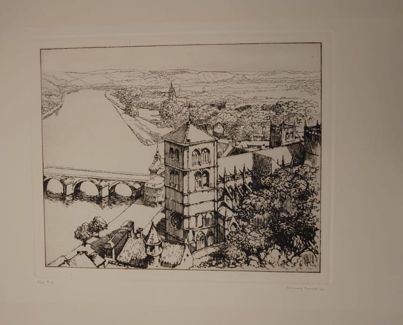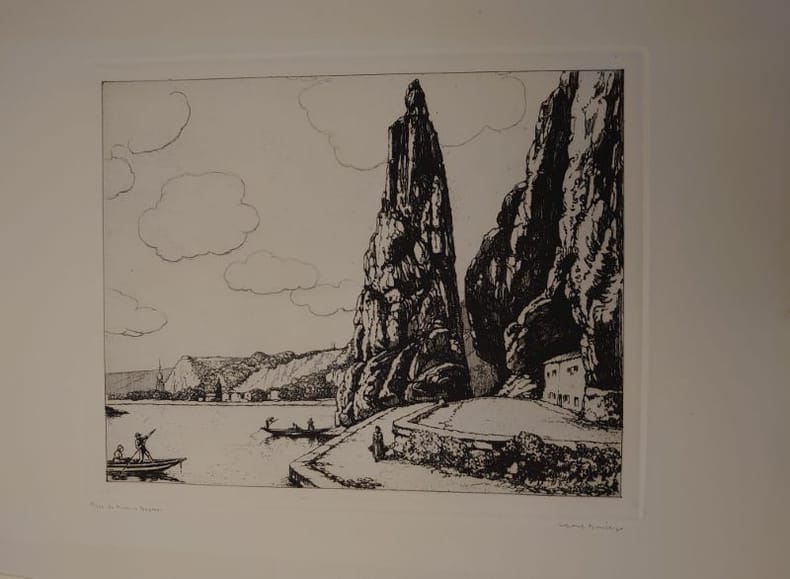 Sans lieu, sans nom d'éditeur, sans date (vers 1950). 43 x 33 cm, en feuilles sous farde d'éditeur. 2 feuillets de texte, et 12 planches numérotés et signés par l'artiste. tirage limité à 150 exemplaires numérotés. Cartonnage légèrement taché, pages de texte avec des rousseurs, gravures en bel état.