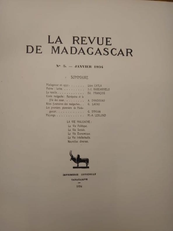 1934. Numéro 5 de janvier 1934, 156 pp. Numéro 6 d'avril 1934, 159 pp. Nombreuses illustrations photographiques. Un volume relié en demi peau de crocodile à coins, couvrure en papier mâché à grosse fibre (reliure ou matériaux provenant de Madagascar). Couvertures non conservées. Bel exemplaire très spectaculaire.